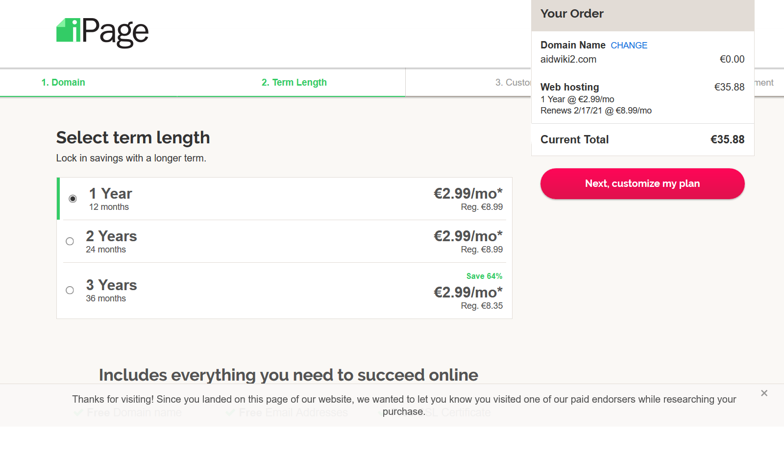 Click on the button 'Next, customize my plan' to keep going forward.